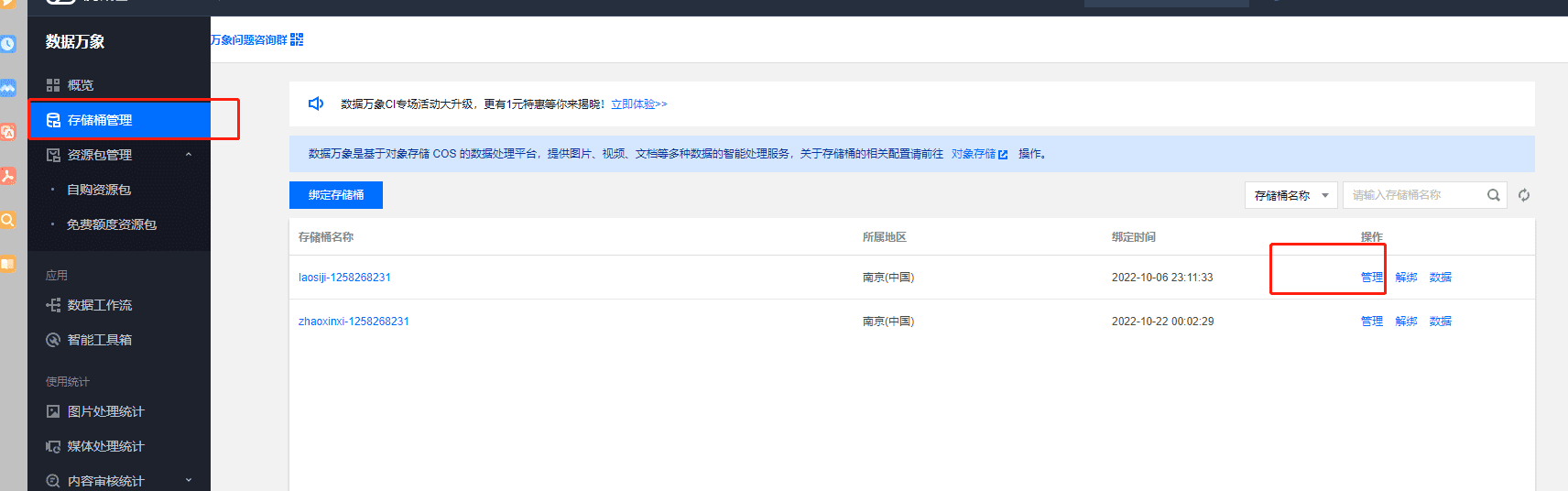 第一步:腾讯云搜索:数据万象,如下图: