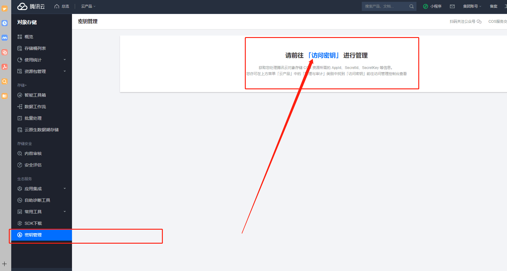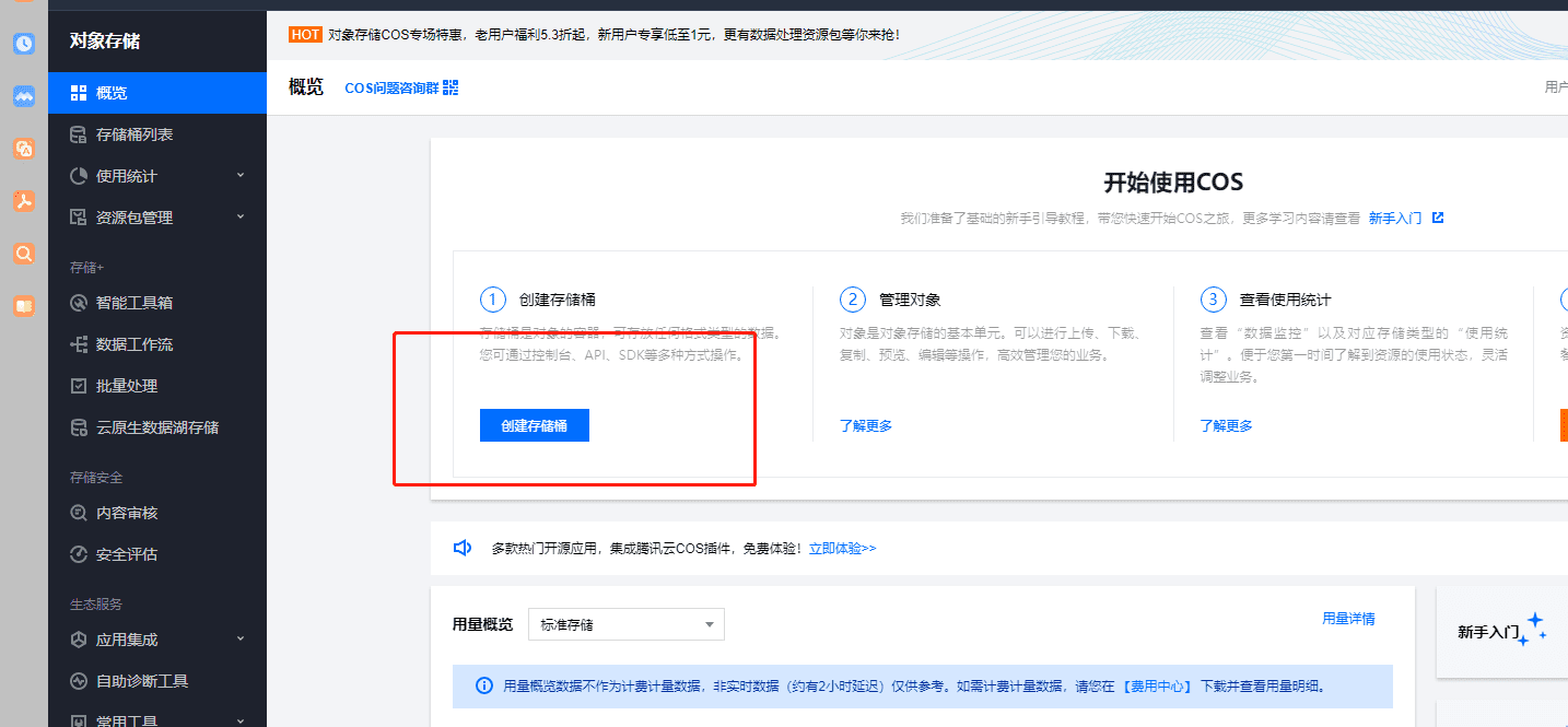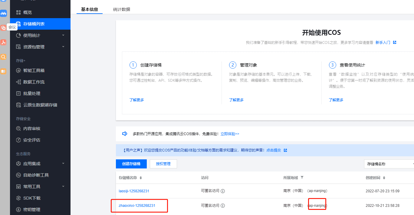 第一步:登录腾讯云搜索:对象存储,如下图: